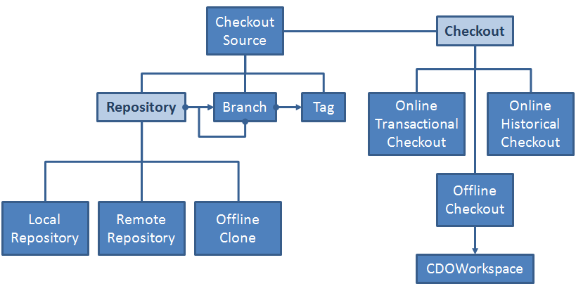 A CDOCheckout is not necessarily a physical copy of a repository on the local disk (only offline checkouts maintain a locally replicated repository copy). More generally they represent the following two aspects: