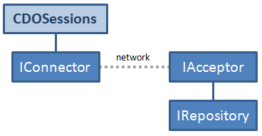 An IRepository is a "real" repository backed by a physical database (of one of various forms). In production such repositories typically exist in a CDO server that provides remote access through one or more ITCPConnectors. The Operator's Guide explains how to configure and operate a CDO server.