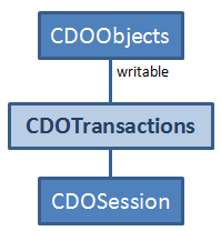 A CDOTransaction is a technical facility that provides a client application with all the latest models and model elements in a repository in a specific branch. The model elements provided by a CDOTransaction are writable. Changes to these model elements must be committed to make them persistent in the repository and to distribute them to the views and transactions of other users.