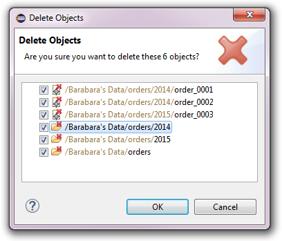 This confirmation dialog only shows the directly selected resource nodes. Nested resource nodes or model elements are not shown for performance reasons but will also be deleted if OK is pressed.